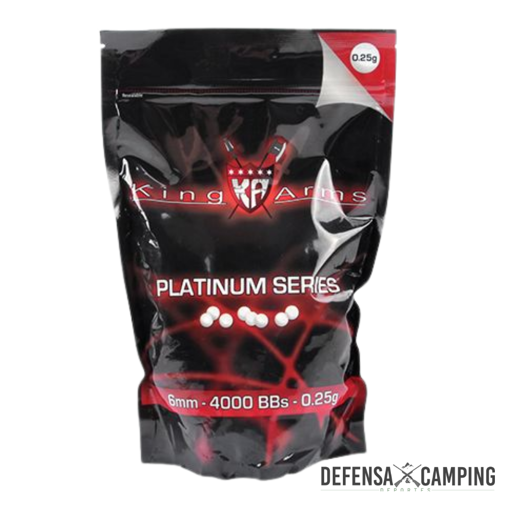Las BBs King Arms Serie Platinum 6mm 0.25g ofrecen alta precisión, trayectoria estable y máxima consistencia, gracias a su diámetro calibrado de 5,95 mm ± 0,01, ideales para rifles y pistolas airsoft AEG, GBB y spring.