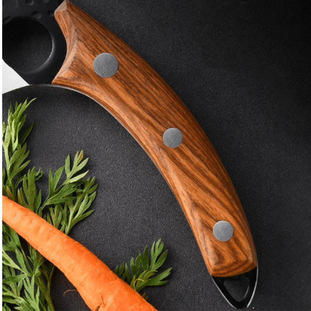 Extremadamente afilado: cada hoja está hecha de acero forjado con alto contenido de carbono. Luego, las hojas se pulen manualmente y, por último, se tratan con un tratamiento satinado, lo que proporciona bordes extremadamente afilados y eficientes que se pueden mantener durante mucho tiempo incluso con un uso diario intenso.
